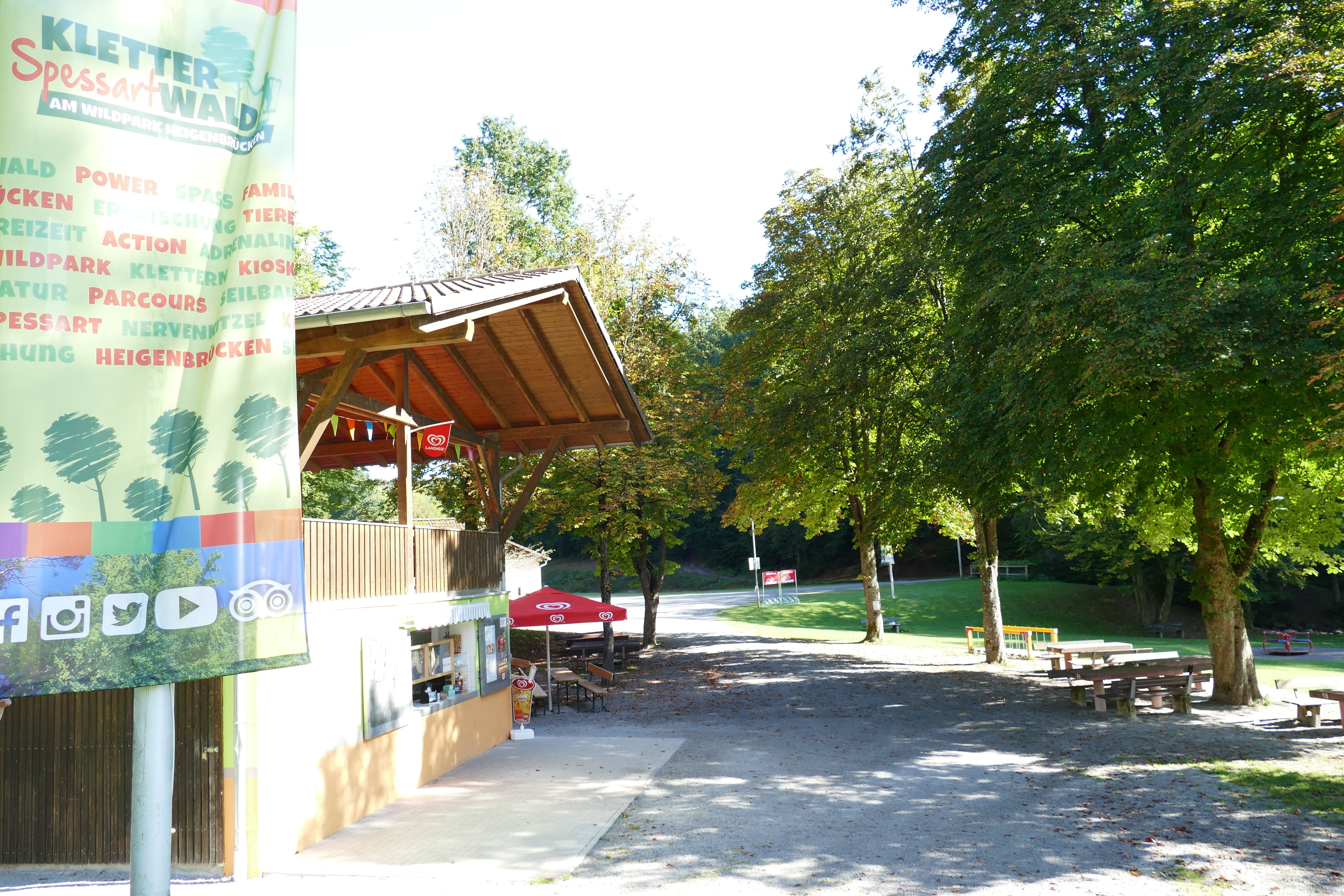 Speisen und Getränke können an unserem "Kiosk am Wildpark" neben dem Kletterwald erworben werden.